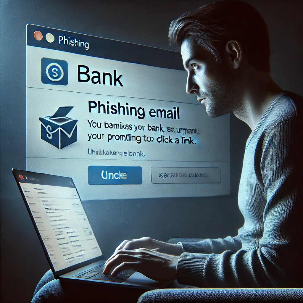 Phishing: Du erhältst eine täuschend echte E-Mail von deiner „Bank“, in der du aufgefordert wirst, dich „schnell einzuloggen“. Der Link führt jedoch zu einer Hackerfalle.